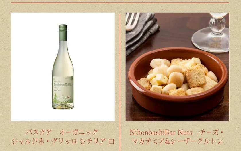 「ワインを楽しむ時間」をテーマに、ワインとおつまみ(K&K缶つま、ナッツ)のペアリングをご提案し、試飲と試食を実施いたします。
