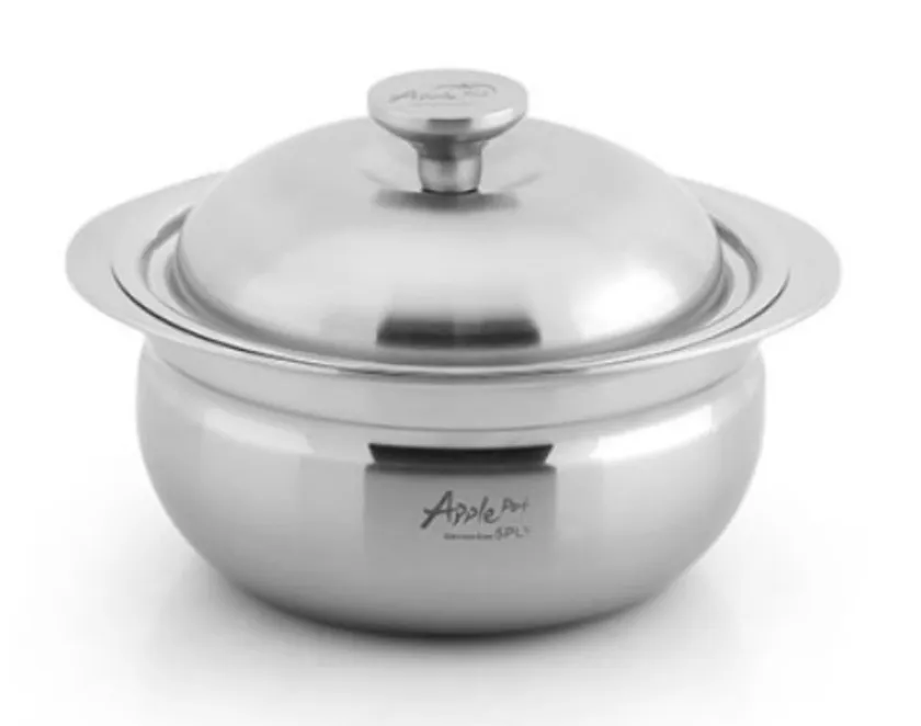 多層構造の圧倒的な保温力と熱効率の良さが魅力で最後の一滴まで美味しく頂けます。吹きこぼれしにくいくびれ形状とドーム型のフタもステンレス初心者にとって扱いやすい便利器具です。お一人の料理でも気軽に使いたくなる、そのまま食器としても利用できるリンゴ形の可愛い調理器具です。