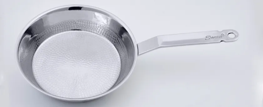 焦げ付きにくいエンボス加工が特徴で、万が一焦げ付いてもたわしでゴシゴシ洗えてしまうのがステンレス初心者にも嬉しいポイント。持ち手のつなぎ目が溶接のためフライパンの内側に汚れもたまりにくく、温めたソースを注ぐ時も液だれしにくい構造になっています。今回は専用キャリーBAGもセットでご用意していますので是非キャンプでもお試しください。