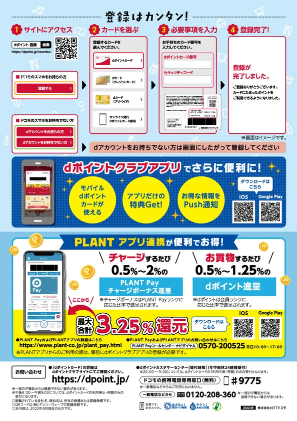 ※2 dポイントカードは、PLANT各店および全国のドコモショップで配布します。