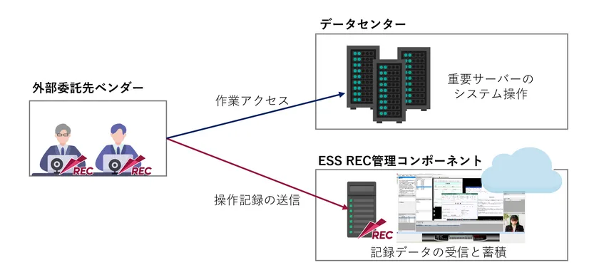 図2. ESS REC Cloudで外部委託先の操作記録を取得する構成例