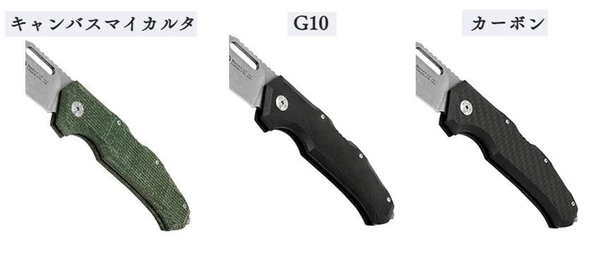 左からキャンバスマイカルタ、G10、カーボン