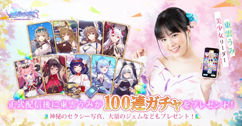 超可愛い美少女ゲームに超可愛い美少女キャラクターを!東雲うみは今回『誓約少女』のために4本のハイクオリティTVCMを撮影して、ゲーム内にも「東雲うみの大冒険」イベントが登場します。正式リリース後100連ガチャがプレゼント!東雲うみのコレクションのねんどろいど、シックレート写真、サイン入りインスタント写真など豪華グッズがたくさんご用意しています!