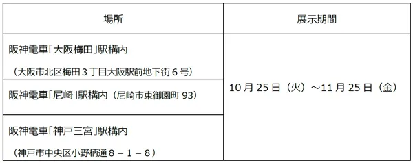 なお、受賞作品は、大阪梅田駅・尼崎駅・神戸三宮駅の各駅構内でシート展示するとともに、本日からホームページに掲載します。併せて、大賞・準大賞の作品は、阪神電車車内にポスターとして随時掲出します。