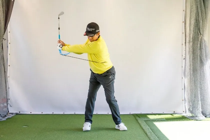 ベンディングアーム【青】は正確なアドレス角度とトップ位置をサポートし、タメの備わった再現性のあるスイングプレーンを生み出します。