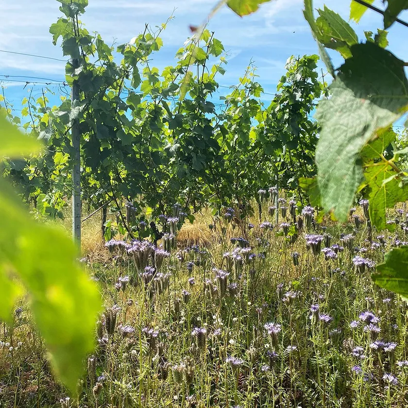 ガズボーンはオーガニックのコンポスト(堆肥)を使用し、近年では農薬や除草剤を75%削減できるようになりました。ブドウ畑の樹の間には、多種多様な植物(カバークロップ)を植え、畑の土壌と生態系の多様性を豊かにするなど、再生農業のシステムや土壌づくりに全力で取り組んでいます。