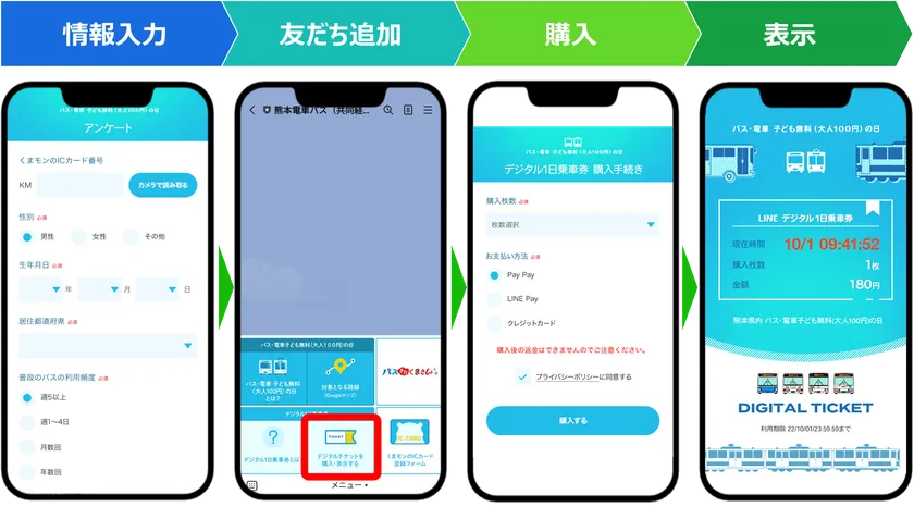 ・購入方法:熊本電車バスLINE公式アカウント(ID:@kumamotodensyabus)限定