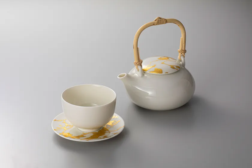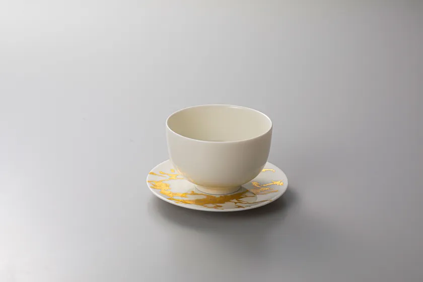 シンプルで洗練されたフォルムの白磁に、金箔で表現したマーブル模様。艶やかな輝きを放ちながらも品のある華やかさがティータイムをいっそう引き立てます。日常の空間で過ごすお茶の時間や、ゲストを迎えた時のおもてなしのティータイムに、ポイント使いやフルラインナップでの自由なコーディネートを楽しんでいただきたいです。ご自宅用にももちろん、さまざまなシーンへの贈りものにもおすすめです。そして、Made in JAPANのテーブルウエアとして海外の方へのギフトにもぴったりです。