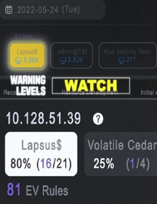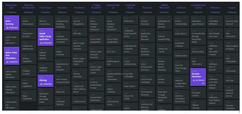 サイバー攻撃と侵入を分類して説明するためのガイドライン「MITRE ATT&CK」の分析機能を通して、「攻撃者がどのような攻撃ツールや戦術、技術、プロセスを踏んだのか」について、TTPsに基づき分析。セキュリティ担当者は発生した脅威に対して、正確に状況を把握し迅速な対応が可能になります。