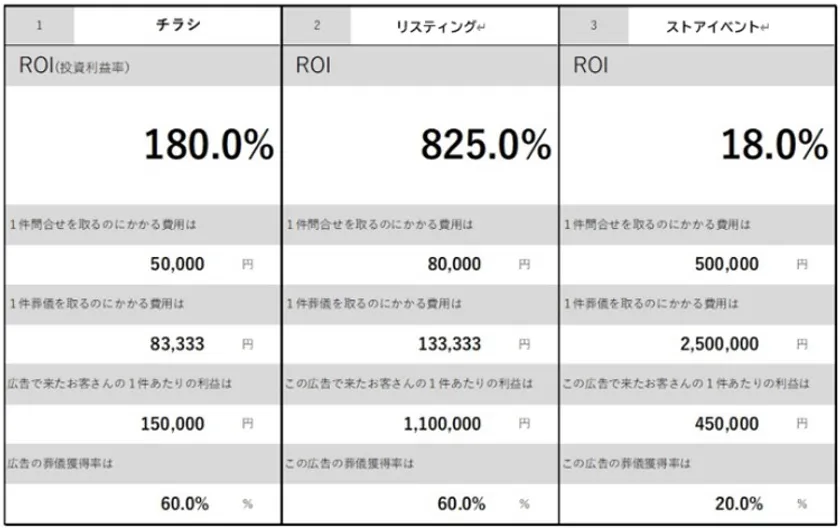 なお、コンサルタントが対応する場合には葬儀社の状況や広告媒体に合わせて測定も行っていきます。ただし、情報が不足する場合に測定ができない場合もございます。