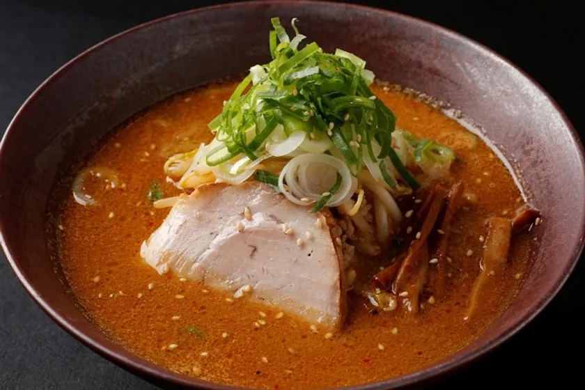 赤味噌ラーメンと対照的な味わいを楽しめる「白味噌ラーメン」は、広島の甘味噌など4種の白味噌をブレンドし、あん肝を練り込んでいます。白味噌の甘みを活かしたクリーミーでコクのあるスープに仕上げています。