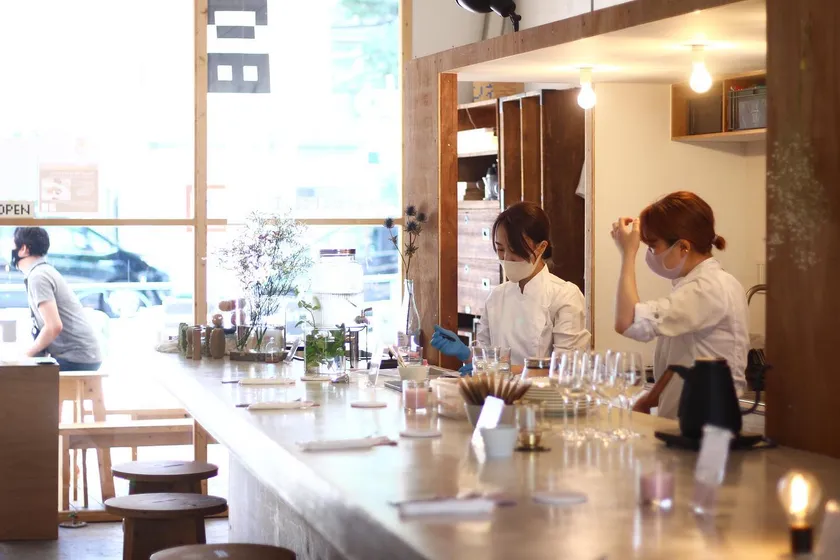 国立への引っ越しをきっかけに、2019年「シェアする商店《富士見台トンネル》」を開業した能作氏。出店者と1つの大テーブルをシェアして、設計事務所を運営しています。空間そのものを貸し出す「シェアする商店」では、地域のさまざまなスキルをもった人たちが、好きなことや得意なことを活かして、誰でも比較的簡単に店を始めることができます。