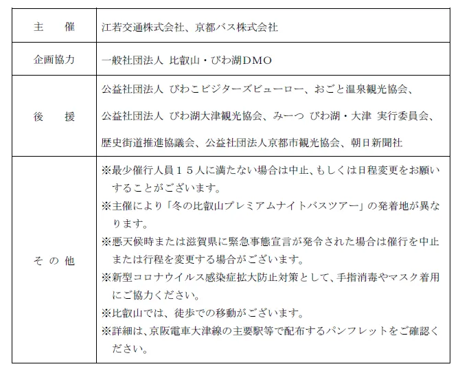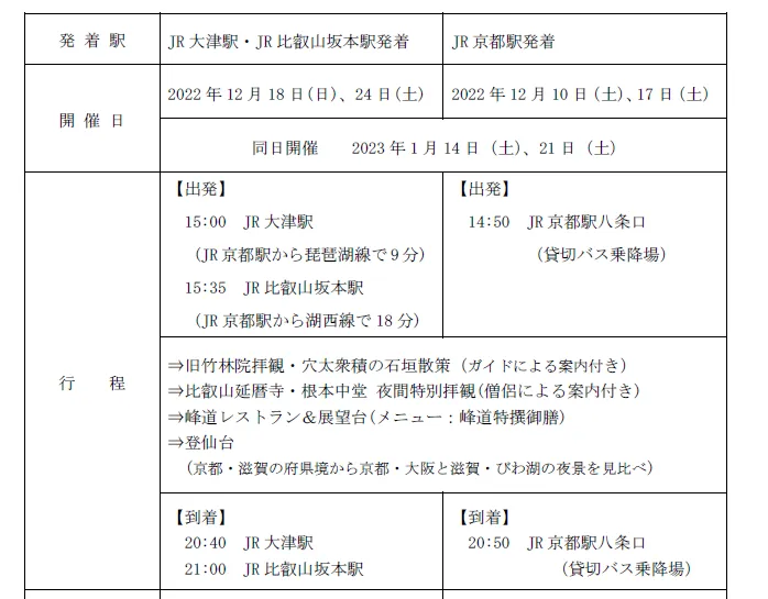 「冬の比叡山プレミアムナイトバスツアー」の概要