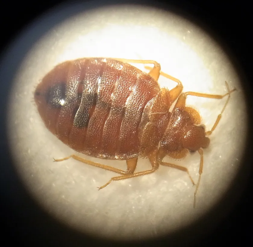トコジラミは、別名ナンキンムシと呼ばれる吸血性の昆虫です。体長は成虫で5~8mm、幼虫で1~2mmほど。日中は寝具・電化製品などの隙間に潜み、夜間に活動します。刺されることで激しいかゆみが生じ(個人差があります)、かゆみによるストレスに悩まされることもあります。