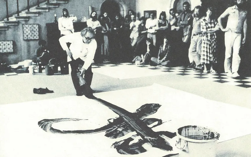 南谷は作品制作と同時に、書道の振興にも尽力し、国内外の大学や研究機関等で「正確な書道史・書の鑑賞の仕方・書の書き方」という講義や実演、書法指導を行いました。当時の資料や新聞記事等の資料を公開いたします。その他、1960年代にニューヨーク近代美術館(MoMA)をはじめとした各種の美術館や著名なコレクターが南谷の作品を購入した記録もご紹介。さらに、ピエール・アレシンスキーやワラッセ・ティンといった著名なアーティストたちとの共同制作や交流記録も展示し、多岐に渡る活動の足跡をたどります。