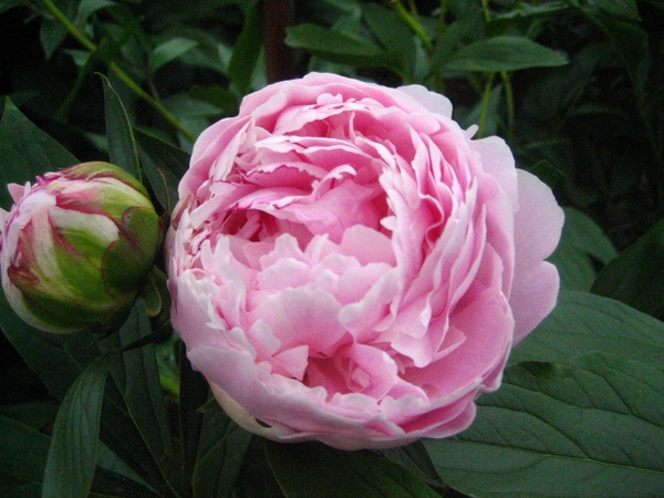 ボタン科の多年草で、昔は一重咲きが主でしたが、海外、日本で品種改良が進み、近年の主流は八重咲きになっています。初夏に紅・白色・ピンクなどのボタンに似た花を咲かせます。美しい女性をたとえて、「立てば芍薬、座れば牡丹、歩く姿は百合の花」と言われているとおり、花が大きくてゴージャス感もあり、女性に人気があります。ボタンが樹木に分類されているのに対して、シャクヤクは草に分類されています。中国の原産で現在は品種も多く、民家の庭先で観賞用として栽培されていることもあります。