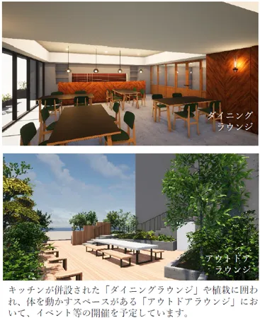 暮らし・仕事・趣味、いずれも思い切り楽しみたいという望みを叶えるため、住宅共用部に1人でも複数人でもおくつろぎいただけるラウンジやワークスペース、ランドリーなど、専有部だけでは叶えることができない機能をご用意いたします。また、これらの機能により、共用部で過ごすきっかけづくりを行うとともに、ご入居者さまに任意でご参加いただけるイベントの企画・運営(※3)などにコミュニティサービスの提携パートナーGONENGO LLCの協力を得て、ご入居者さま同士のコミュニティ醸成をサポートいたします。