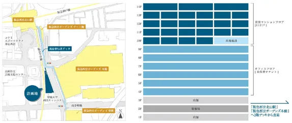 阪急阪神不動産株式会社(本社:大阪市北区、社長:諸冨隆一(※2))は、阪急西宮ガーデンズ本館の西側において建設中の「(仮称)阪急西宮ガーデンズ西側土地開発計画」の地上14階建て複合施設の10階~14階において賃貸住宅(以下「本賃貸住宅」)を計画しています。