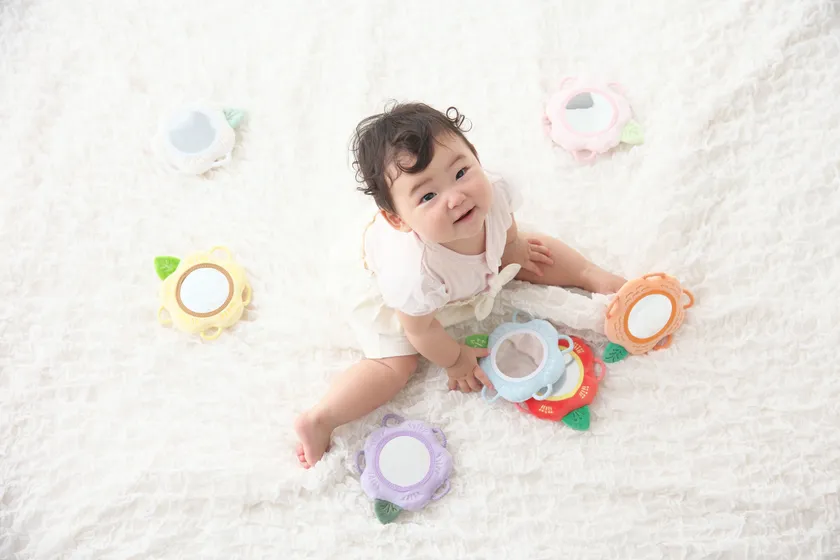 クリスマスギフトにも!赤ちゃんの好奇心を刺激する お花がモチーフの布製ソフトミラー「わっかミラー」に 新柄4種登場!