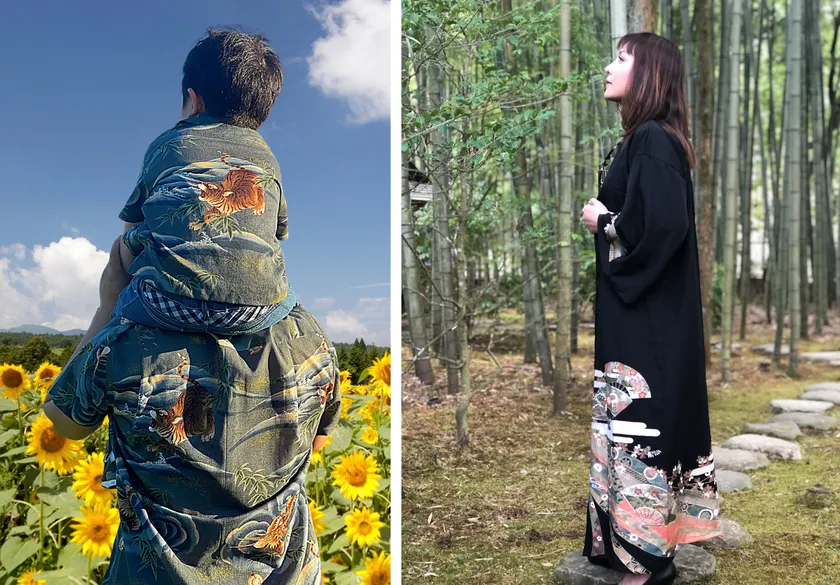 アンティークの着物を使用した福島県のアロハシャツブランドです。高い技術を持つ職人が、着たときに最も美しく見える「柄合わせ」を行い手作業で縫製。果樹の選定枝を活用した木ボタンが温もりを添えます。日本画のような1枚をお楽しみください。
