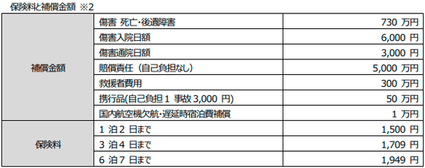 ※2 補償内容に関して、保険金をお支払いできない場合やお支払い条件があります。保険商品に関する詳細はチャブ保険までお問い合わせください。