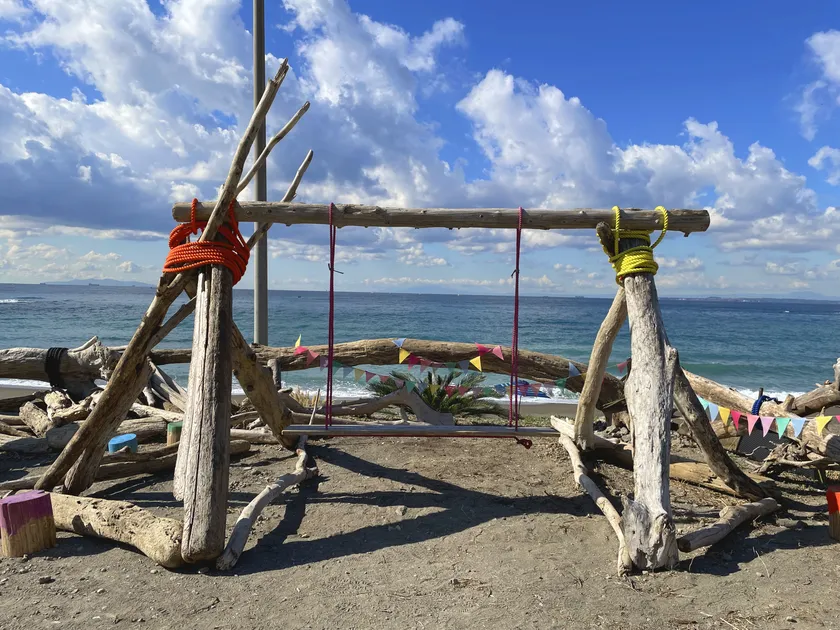 国生み神話では、伊邪那美命(イザナミノミコト)と伊弉諾尊(イザナギノミコト)が最初に国づくりをおこなった時に2人が立っていたのが天橋立と古事記でいわれており、「男女を結ぶ聖地」と呼ばれる由縁となっています。そんな神話ゆかりの男女の地に、期間限定で新たなスポットが誕生します。天橋立の絶景を臨むハートのオブジェとブランコは、カップルの特別な思い出に。このオブジェは、千葉県鋸南町を襲った台風15号(2019年)被害で出た流木を使用し、同地で活動するアーティストの飯田 善郎 ベンジャミン氏が制作したものです。かつてここから国づくりが行われたように、天橋立の今後の観光地としての高付加価値化、そして男女の愛の誓いの場といった「はじまり」のシンボルとして訪れる皆様の記憶に残るスポットを創ります。