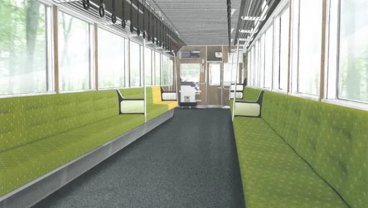 のファブリックを採用。車両のテーマである「人と森が調和する沿線の景色」