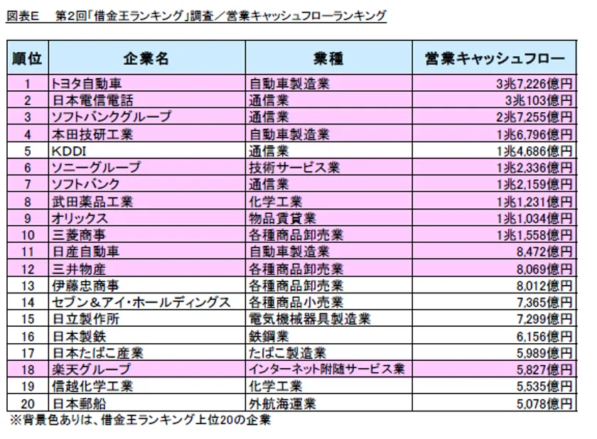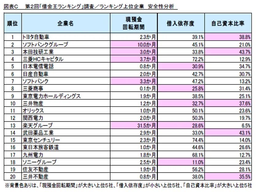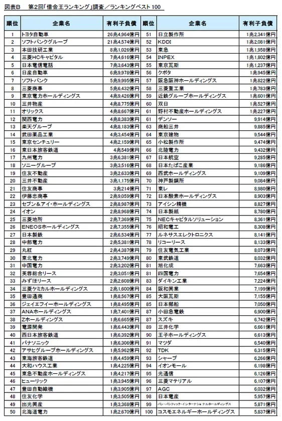 第2回「借金王ランキング」調査 ~安全性・収益性は高評価の企業が多数~