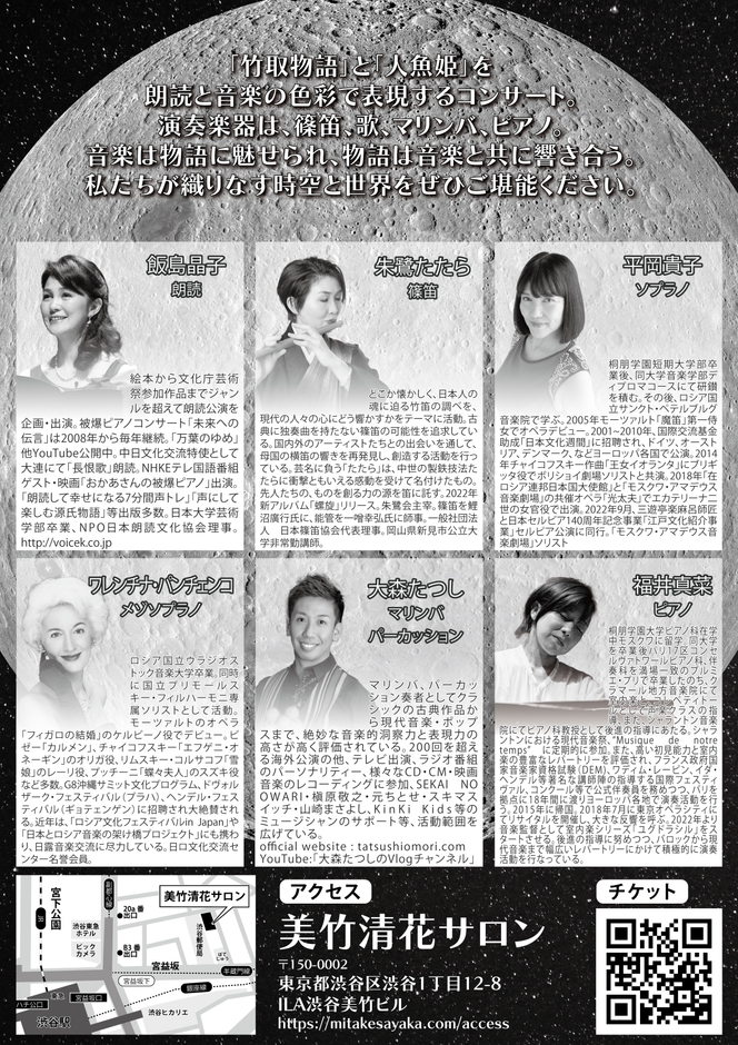 「竹取物語」と「人魚姫」をお話と音楽の色彩で表現するコンサート。