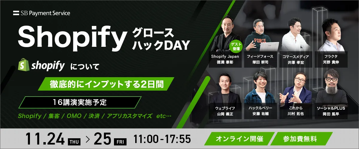 【11月24~25日無料ウェビナー】Shopifyについて徹底的に インプットする2日間「ShopifyグロースハックDAY」を開催