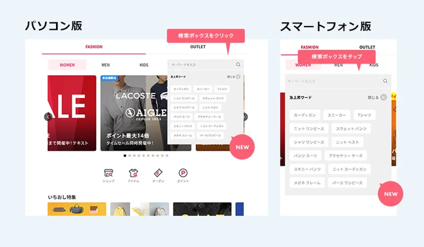 キーワードを入力する検索ボックスに、「急上昇ワード」の表示を追加しました。お客様が検索している注目ワードのチェックや、検索キーワードに迷った時にご活用ください。