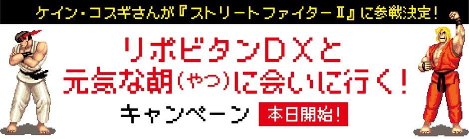 その記念日に開始されるストリートファイターⅡとリポビタンDXのコラボレーション企画、その名も「リポビタンDXと元気な朝(やつ)に会いに行く!」キャンペーン。本キャンペーンを通して、生活者の方が、「元気な“朝”」を向かえ、エネルギッシュな日々を送っていただくことを応援します。