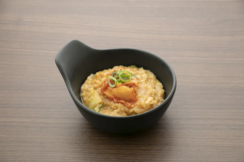 こってりスープの旨味がギュッと染み込んだごはんの上に、チーズとキムチを入れることで、リゾット風の〆が完成します。