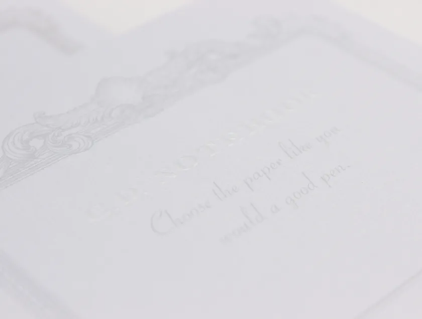 特別感を演出する飾り罫印刷。タイトルには透明浮き出し箔。