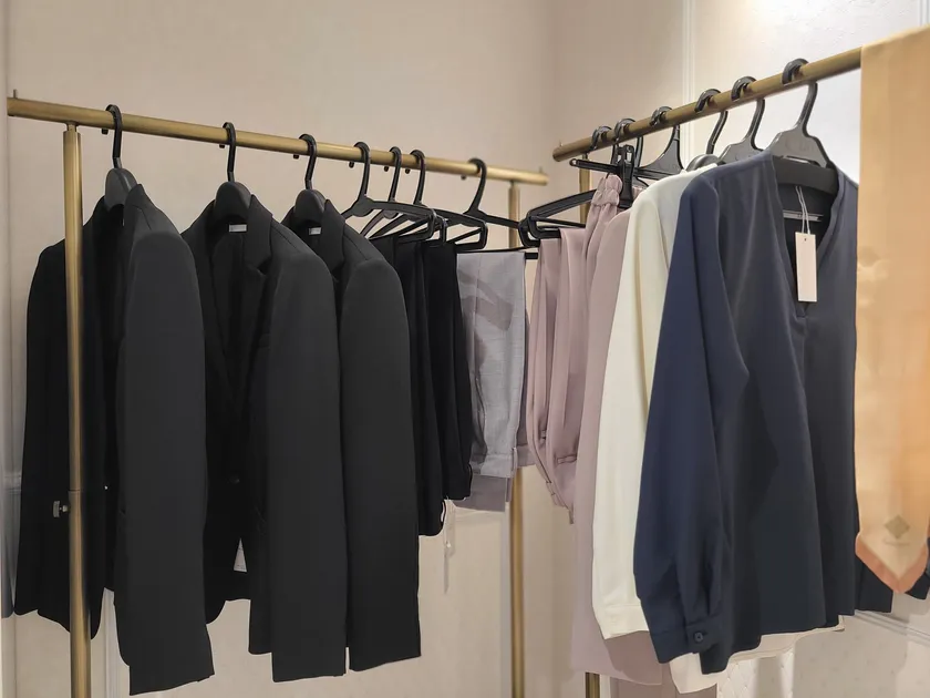 リニューアルオープン後は、“働く女性”の皆さまにトータルコーディネートのご提案ができるよう、当社商品だけでなく当社と同じ≪働く女性のために≫という想いで運営されているブランド様(2社)の一部商品も展示しています。