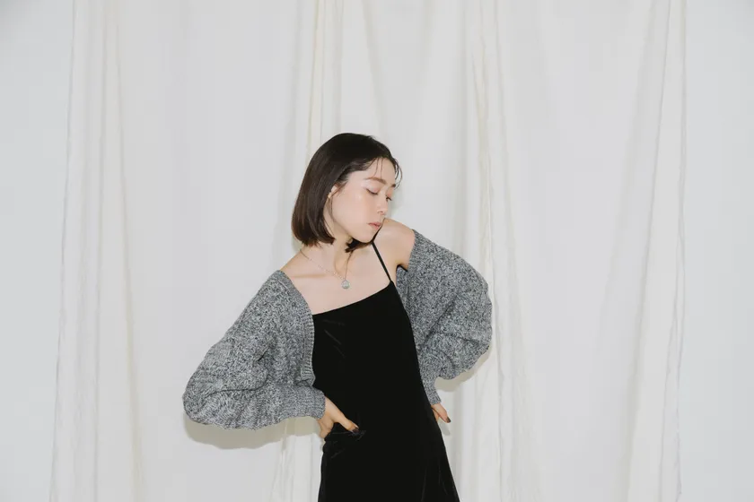 ・ケーブル編みニットボレロ