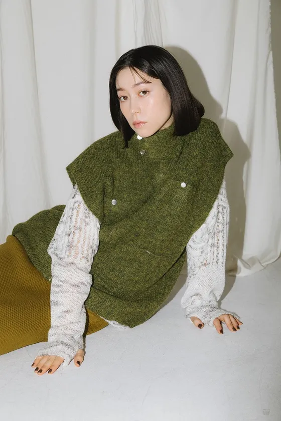・ダブルポケットミニシャギーニットベスト