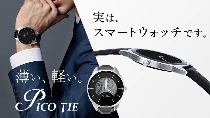 薄さを極めたスマートウォッチ『Pico Tie』 公開1週間で400万円を超える応援購入額を達成!先行販売中!