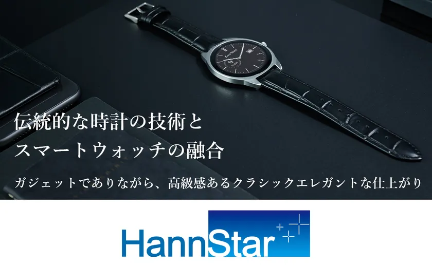 伝統的な時計の技術とスマートウォッチの融合。世界トップクラスの大手液晶メーカー・HannStar社(ハンスター)が展開する、エレクトロニクスブランド・HANNspreeが手がけるスマートウォッチ。ガジェットでありながら、高級感あるクラシックエレガントな仕上がりを目指しました。