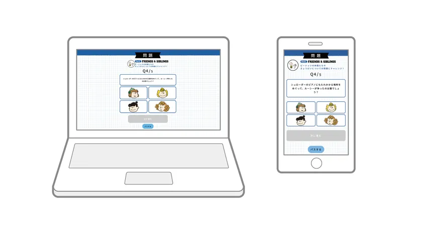 一般的な検定のように得点が出るのではなく、正答数に応じてハートマークが増えていくのがPEANUTS LOVERS CHALLENGEの特徴です。回答すると結果はもちろん、解説もついてくるので知識量に関係なく、どなたでもお楽しみいただけます。