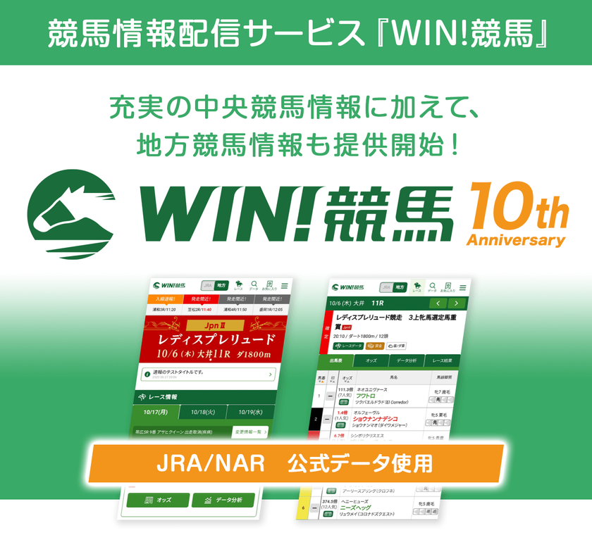 リリース10周年を迎える『WIN!競馬』、 地方競馬情報の提供を開始!