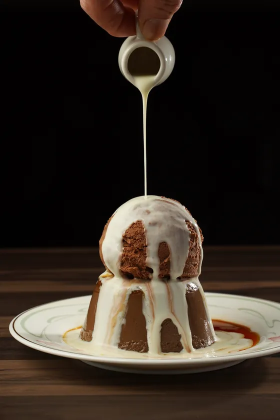 チョコプリンのアイスクリーム乗せ