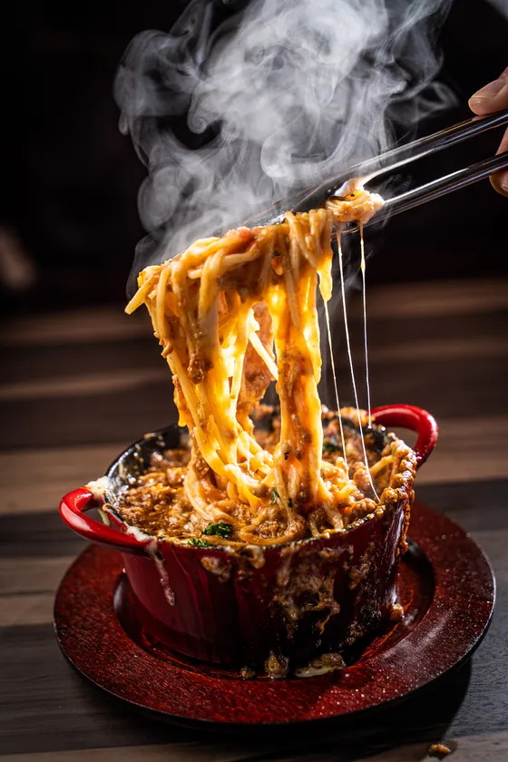 まるで溶岩が流れるようにぐつぐつしたミートパスタ