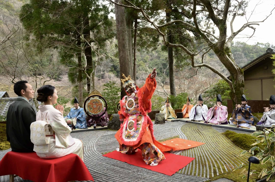 各施設が独創的なテーマで、圧倒的非日常を提供する「星のや」。京都府・嵐山にある全室リバービューの旅館「星のや京都」は、2023年1月21日、22日、28日、29日の4日間、星のや京都の「奥の庭」で無病息災を祈り、活力を得る「春立つ蘭陵王の舞」を開催します。平安時代より舞楽*1演目として有名な「蘭陵王」は、いまなお現代においても、諸行事において数多く上演されている演目です。星のや京都にある奥の庭で迫力のある装束を纏った勇壮な走り舞*2と華やかな音色に包まれた舞楽を鑑賞し、無病息災を願って福茶と和菓子を味わいます。節目を迎える立春の時期に、奥の庭に響く音色の中で蘭陵王が活発に舞う姿から活力を得ることができる特別イベントです。