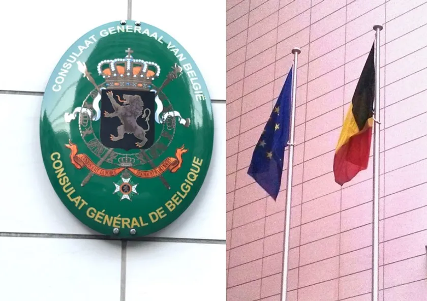 ベルギー大使館に掲げられている国家の紋章と国旗