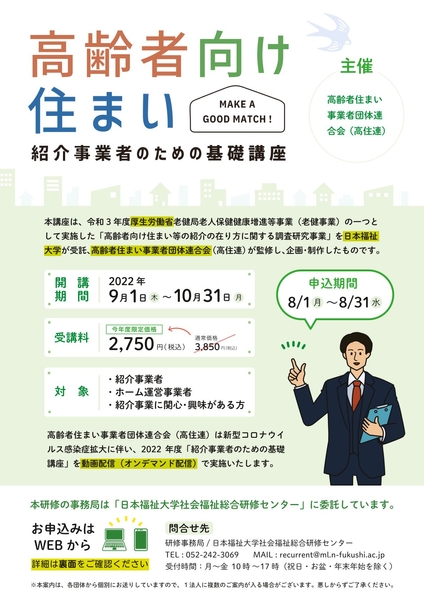 (高住連HP)「高齢者向け住まい紹介事業者のための基礎講座」をご活用ください