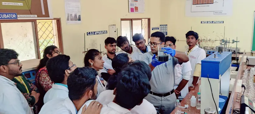 昨年の本講座が大変好評であったことから、対象学部を化学・土木工学部に加え、バイオ技術・建築工学まで拡大、受講生数も1.5倍に拡大いたしました。内容は、日本の環境概論、インドと日本の環境法令・排水処理概論、原理・運用・保守の必要性、実習・分析の原理、測定方法、評価方法等について、座学は日本からオンラインで、実践的な現場教育は現地法人日吉インディアによりDr.M.G.R.の実験室と生活排水処理施設現場で行いました。参加学生からは「将来のキャリアに役立つ」といった意見の他「環境の重要性を学んだ。」「自分の専攻を研究する中で環境というファクターを取り入れなければいけないと認識した」といった声が聞かれました。まだ環境への意識の低いインドにおいて、彼らがキャリアを選んでいく中で環境対策に取組むリーダーとなることを期待しています。