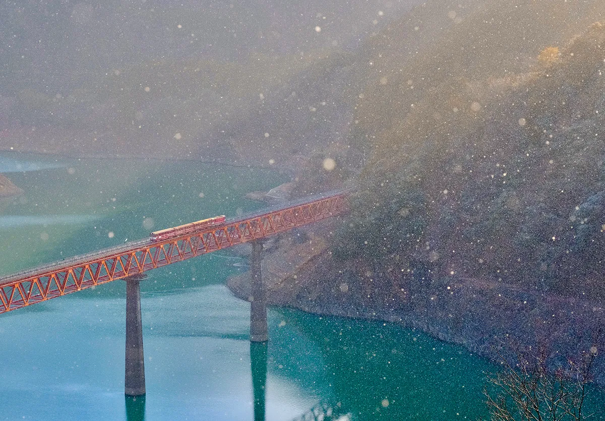 この路線は一日に数本しか冬は走らないので、撮影のチャンスが少ないにも関わらずよく雪が降ってくれましたよね。光も射していて、本当に写真の神様を味方につけている。何より、この状況を逃さずにおさえたというところが素晴らしい!