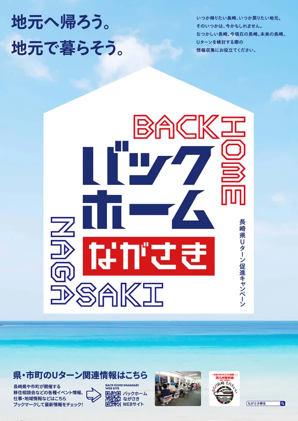 キャッチコピー・ロゴについては、シンプルで覚えやすいタイトルとし、明快且つ視認性の高いデザインとしています。また、背景はUターン意欲を醸成するため、想い出深い長崎県の象徴的な風景にしています。