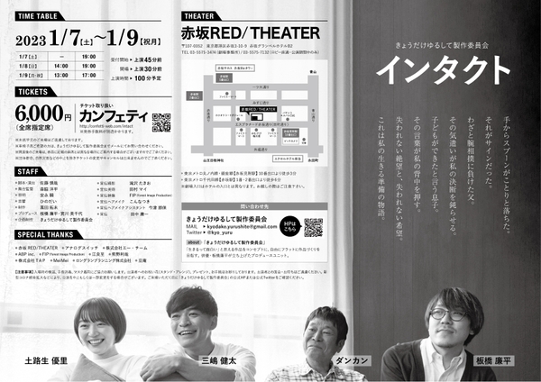 きょうだけゆるして製作委員会『インタクト』が2023年1月7日 (土) ~2023年1月9日 (月・祝)に赤坂RED/THEATER(東京都港区赤坂3-10-9赤坂グランベルホテルB2F)にて上演されます。